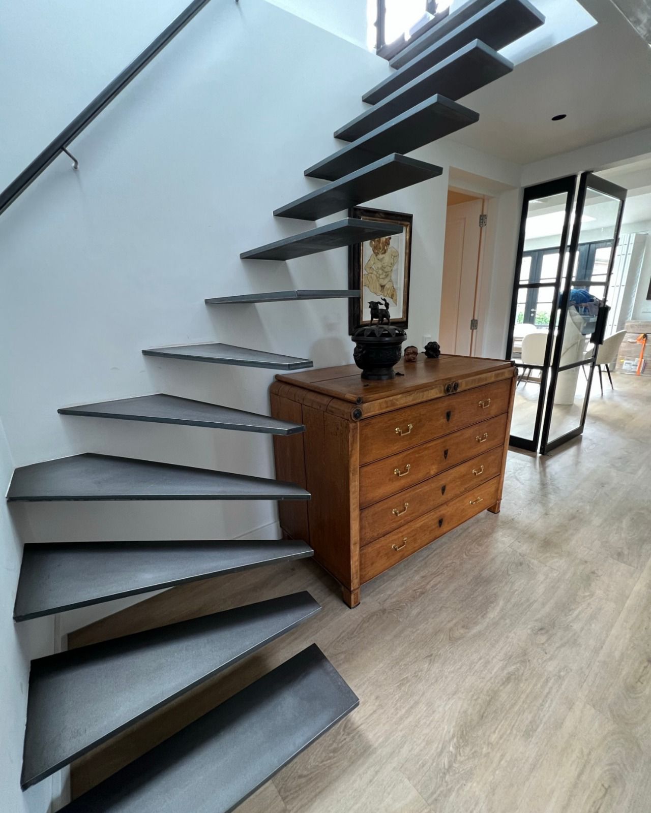 Wij plaatsen metalen trappen in iedere situatie. Onze specialiteit is de “zwevende” trap, de traptredes komen uit de muur. Hierdoor blijft de ruimte open en heb je een echte eyecatcher. Omdat wij zelf de ontwerpen maken kunnen we de metalen trappen maken als u dat wenst. En omdat we ze ook zelf komen plaatsen zijn wij volledig eigenaar van het proces. Alles zodat u kunt gaan genieten van een mooi resultaat.