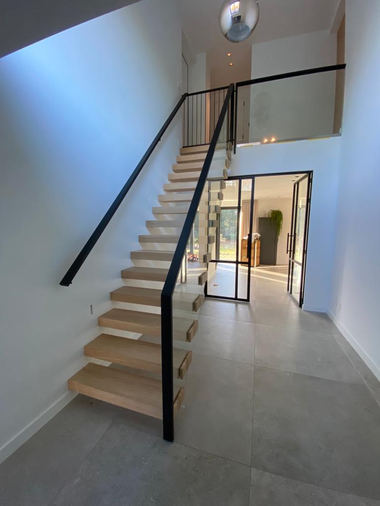 Voor onze opdrachtgever in Twello hebben wij een maatwerk zweeftrap gerealiseerd. Voor de opdrachtgever was een minimalistische look het allerbelangrijkste. Dit houdt in dat de uitstraling zo moest zijn dat er geen bevestiging te zien is. Daarnaast wilde de opdrachtgever geen stalen treden, maar eikenhouten treden. Deze combinatie geeft de trap een moderne look.